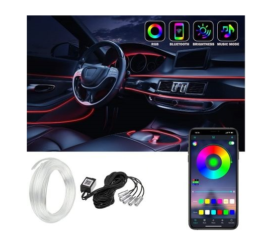 Creează o atmosferă magică și relaxantă în mașina ta cu lumini ambientale auto Bluetooth cu LED și fibră optică de 6 metri.