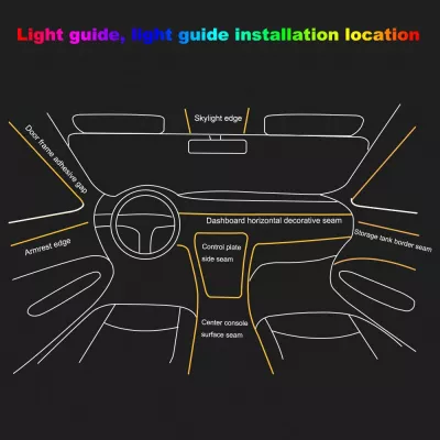 Montarea și instalarea luminilor ambientale auto sunt simple și rapide. Fibră optică și capetele sunt ușor de fixat în locațiile dorite cu ajutorul adezivului inclus.Conectorul Bluetooth se conectează la sistemul electric al mașinii, asigurând o alimentare stabilă și fiabilă a luminilor.
