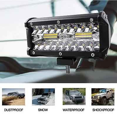 Un proiector LED Bar de 120W Offroad este un dispozitiv de iluminat utilizat în special pentru vehiculele off-road, cum ar fi camioanele, ATV-urile sau vehiculele recreative, pentru a oferi iluminare suplimentară în condiții de lumină scăzută sau în timpul aventurilor în afara drumului.