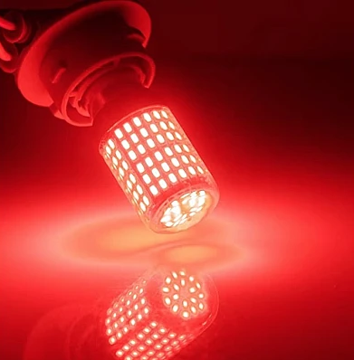 Setul de 2 becuri LED pentru Marsarier cu lumina ROSU 6000K, Tip Bec P21W BA15S, cu 144 SMD-uri, este o solutie excelenta pentru a imbunatati iluminatul de marsarier al vehiculului dumneavoastra.