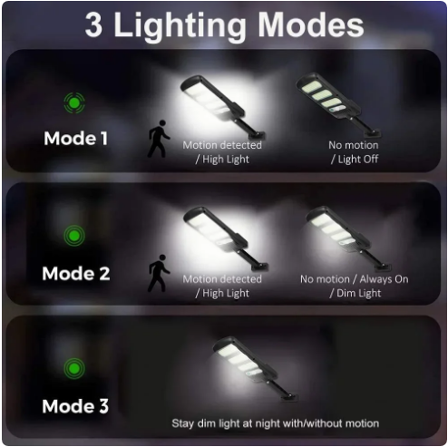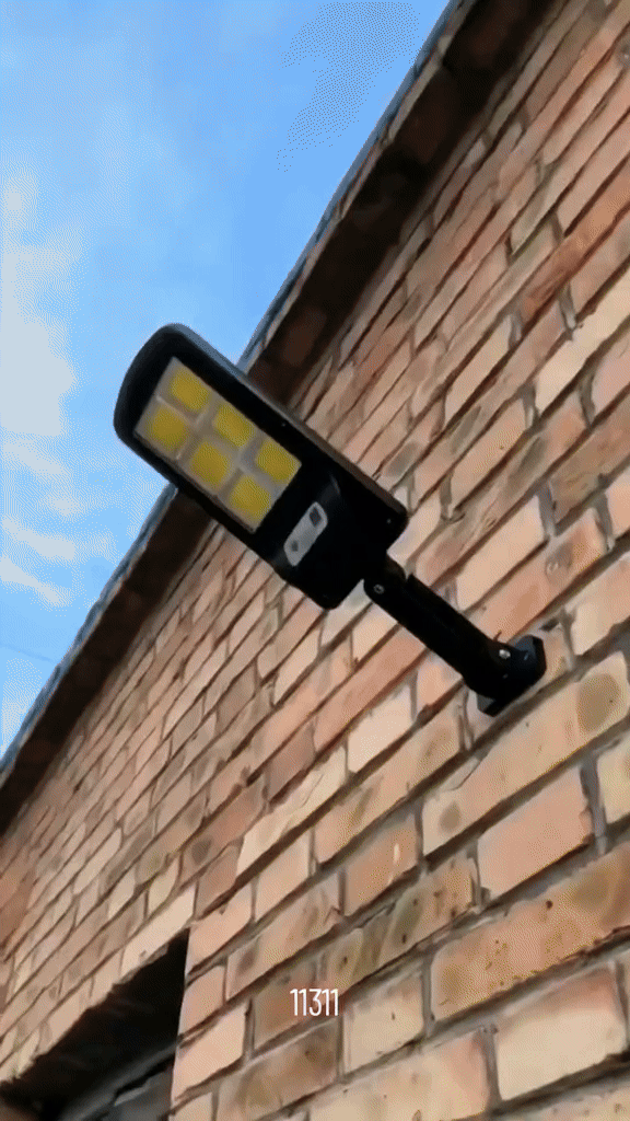 Lampa reglabila cu panou solar si senzor de miscare se reincarca la lumina soarelui si foloseste puterea stocata pentru iluminarea peste noapte. Peste 12 ore de iluminare dupa o zi de incarcare. Este rezistenta la intermperii cu un grad de rezistenta de IP64