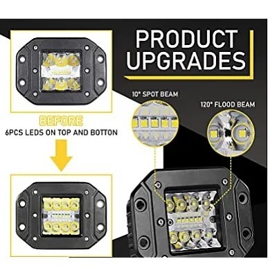 Iluminare Puternică: Echipate cu 4/6/4 LED-uri aranjate în 3 rânduri, aceste proiectoare oferă o lumină strălucitoare și concentrată, esențială în condiții de vizibilitate redusă.