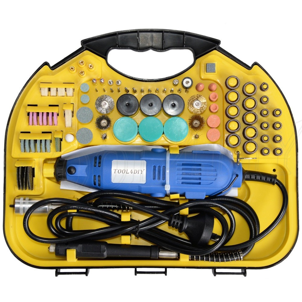 Setul trusa biax minifreza 117 piese Polonia este recomandat pentru taiere, polizare, gaurire si lustruire (in functie de accesoriile montate) si poate atinge 33.000 rotatii/minut, viteza poate fi reglata folosind butonul situat in partea laterala.
