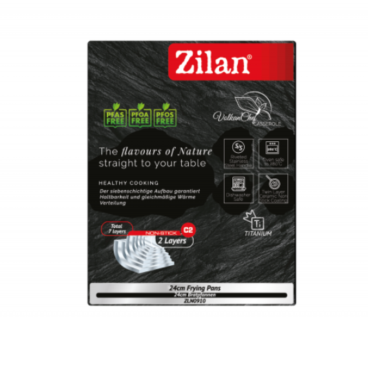 Tigaia Zilan ZLN0927 este construita din 7 straturi de material, avand 2 straturi speciale de materiale pentru a evita lipirea mancarii de tigaie aceasta are acoperire antiaderenta C2 in interior. Tigaia este construita din Titan si manerul acesteia este nituit si este din otel inoxidabil. Datorita materialelor utilizate de buna calitate tigaia reuseste sa aiba 2 straturi aderente si are protectie impotriva ustensilelor de gatit pentru a nu o deteriora.