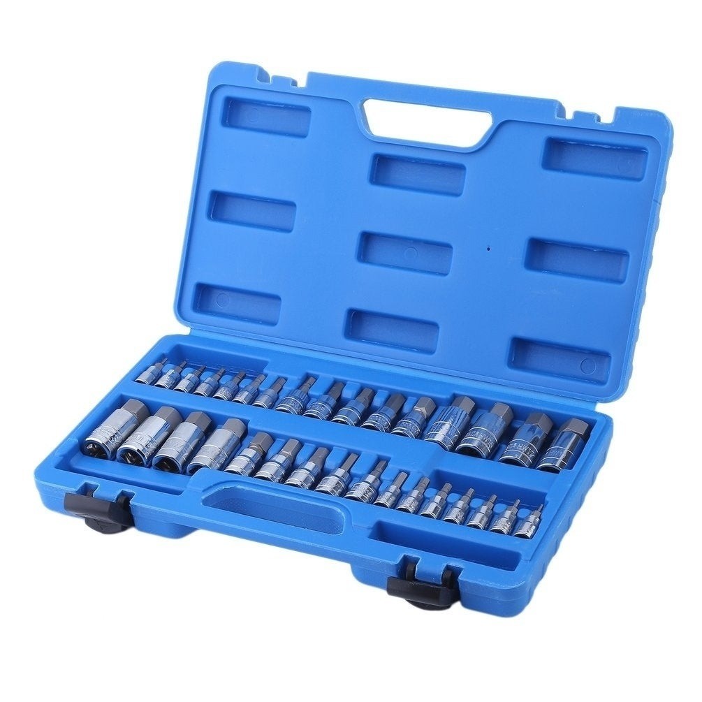 Include 32 piese din cele mai uzuale marimi cu prindere 1/4, 1/2, 3/8.