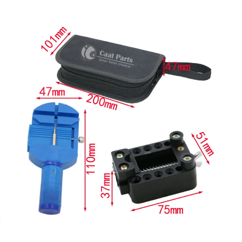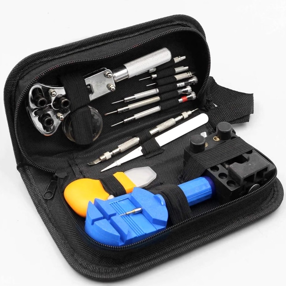 Aceasta trusa contine toate piesele necesare pentru a repara ceasuri sau a scurta bratara acestora. Setul complet de instrumente este echipat cu toate uneltele folosite intr-o ceasornicarie.